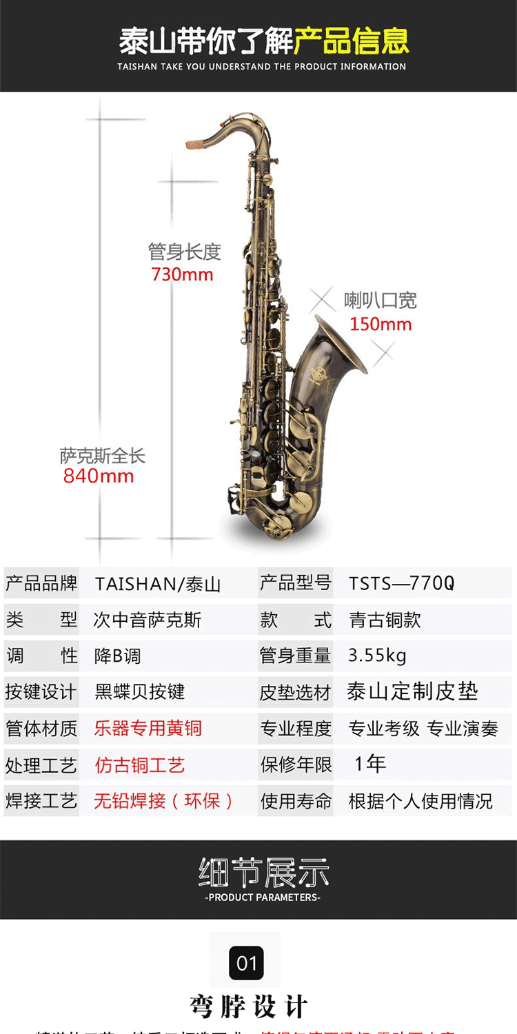 泰山中音降e調(diào)專業(yè)級薩克斯龍雀